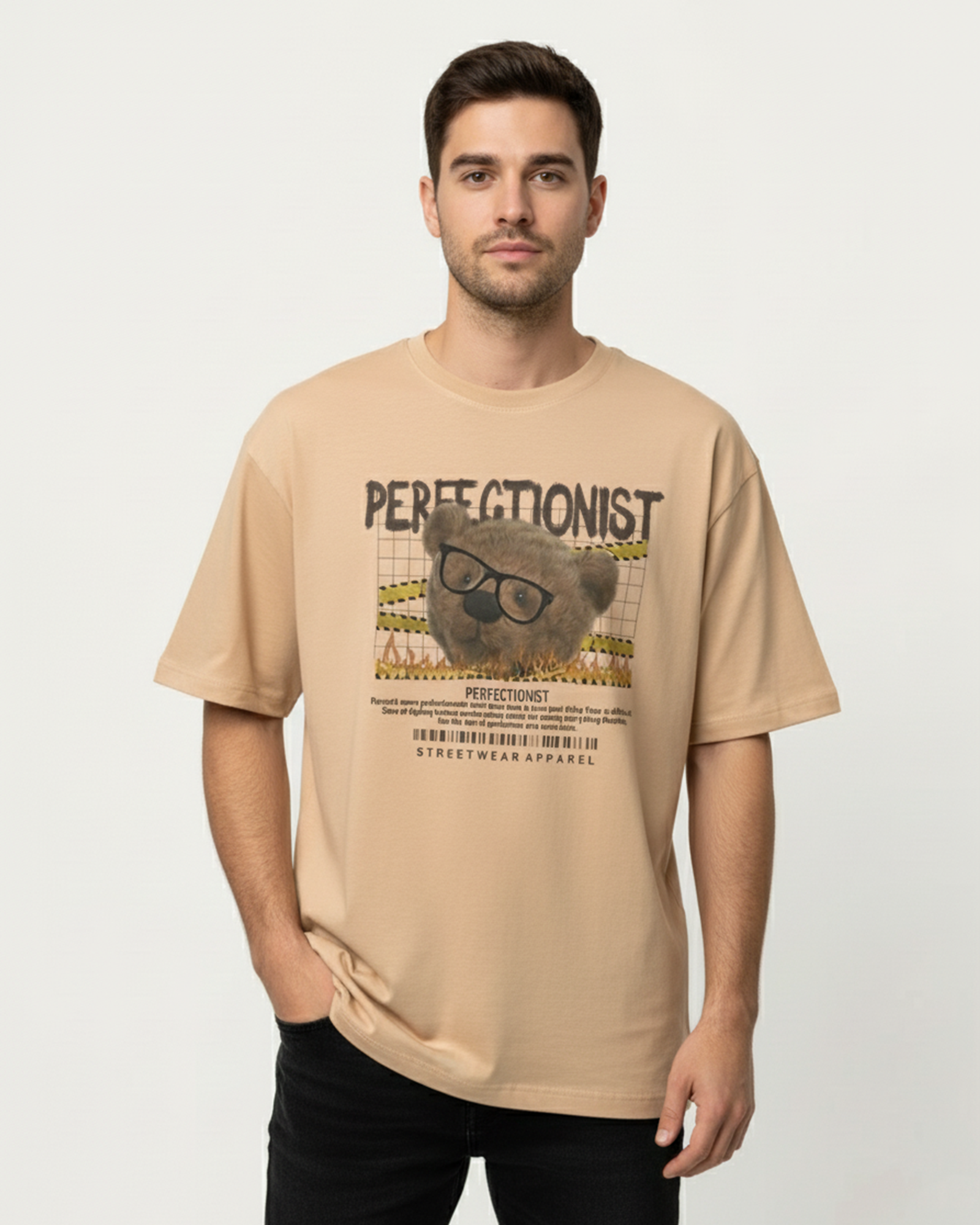 Embrace modern streetwear with the Perfectionist Teddy Oversized Streetwear T-shirt. Crafted from 240 GSM French Cotton Terry, this t-shirt combines a soft, breathable feel with a relaxed oversized fit. Featuring a unique teddy bear graphic with bold street-art elements, this tee adds a distinctive edge to your casual outfits. Perfect for those who love individuality and comfort in their wardrobe.