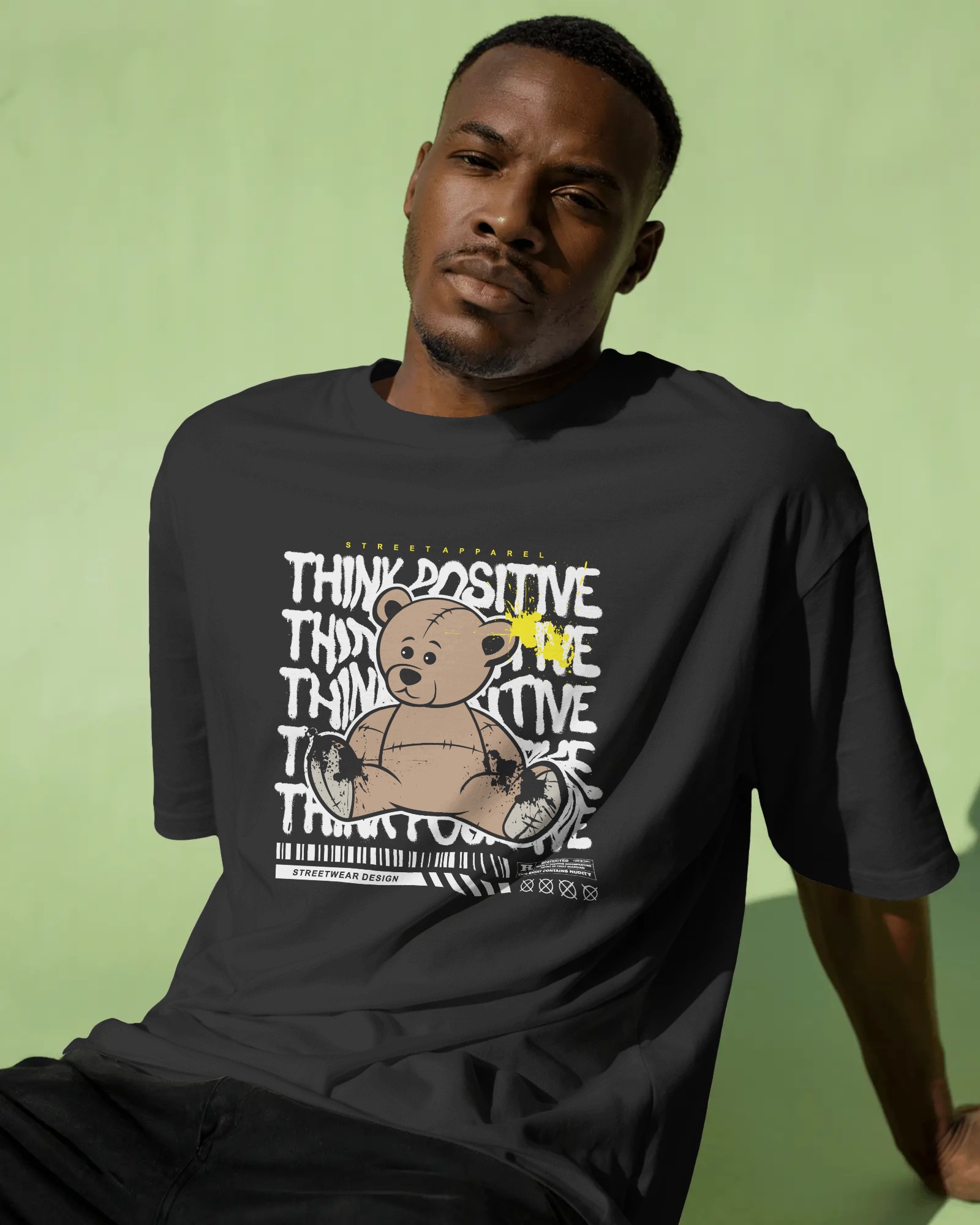 Think Positive Teddy Oversized Streetwear T-Shirt